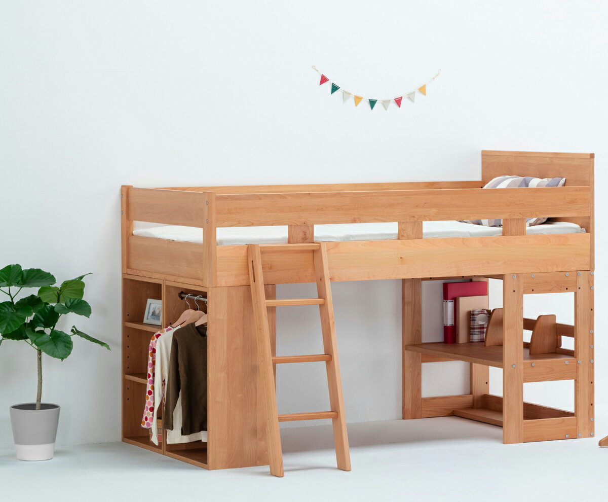 堀田木工 Track トラックシステムベッド シングルベッド ナチュラル アルダー材 天然木無垢 自然素材 カントリーシンプル ロフト 子供部屋 送料無料 完成品 オイル仕上げ 木製 日本製