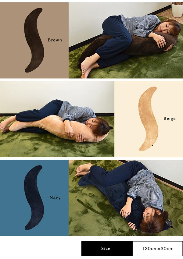 ※[店舗管理用 URL]a08969※[品番]【ブラウン:a11535】【ベージュ:a11536】【ネイビー:a11537】 リラックス効果で絶妙フィットの抱き枕流線型フォルムで絶妙なフィット感!抱き心地抜群の抱き枕の登場です。