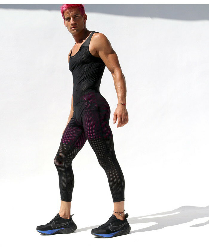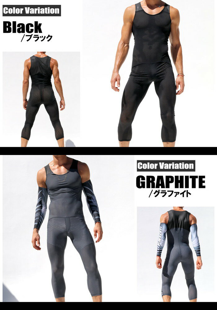 ストレッチメッシュ生地で作られた上下一体型のスポーツウェアです。